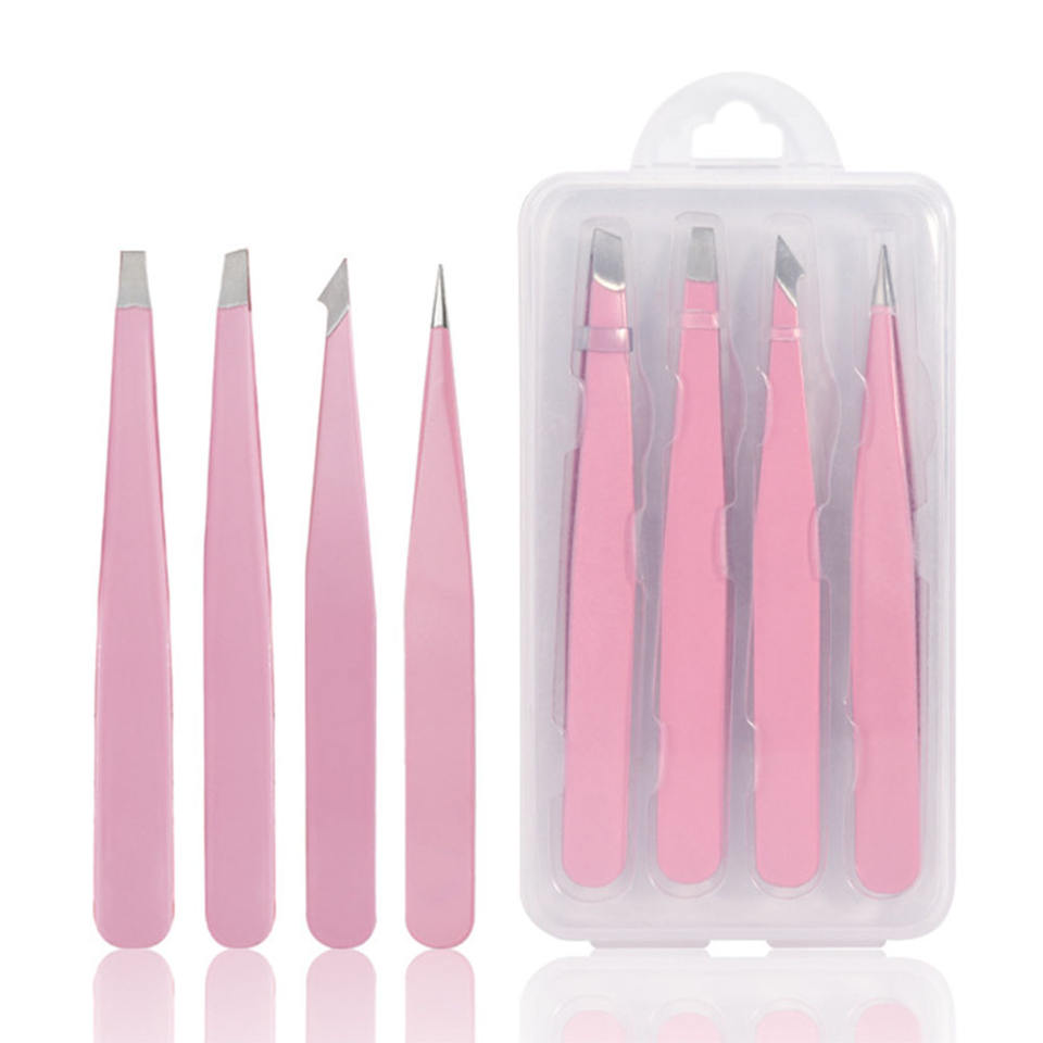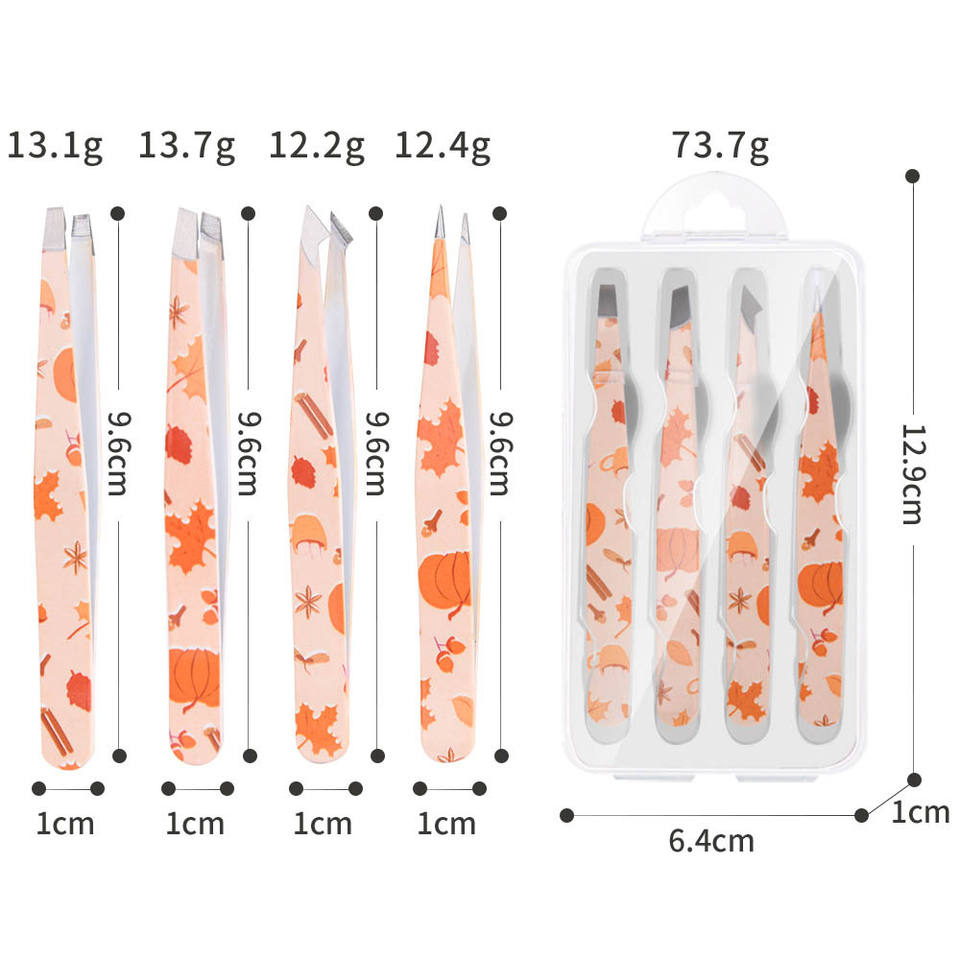 Juego de Pinzas para Pestañas de Acero Inoxidable con Punta Inclinada y Logotipo Personalizado, 4 Piezas, Marca Maple Leaf Printing