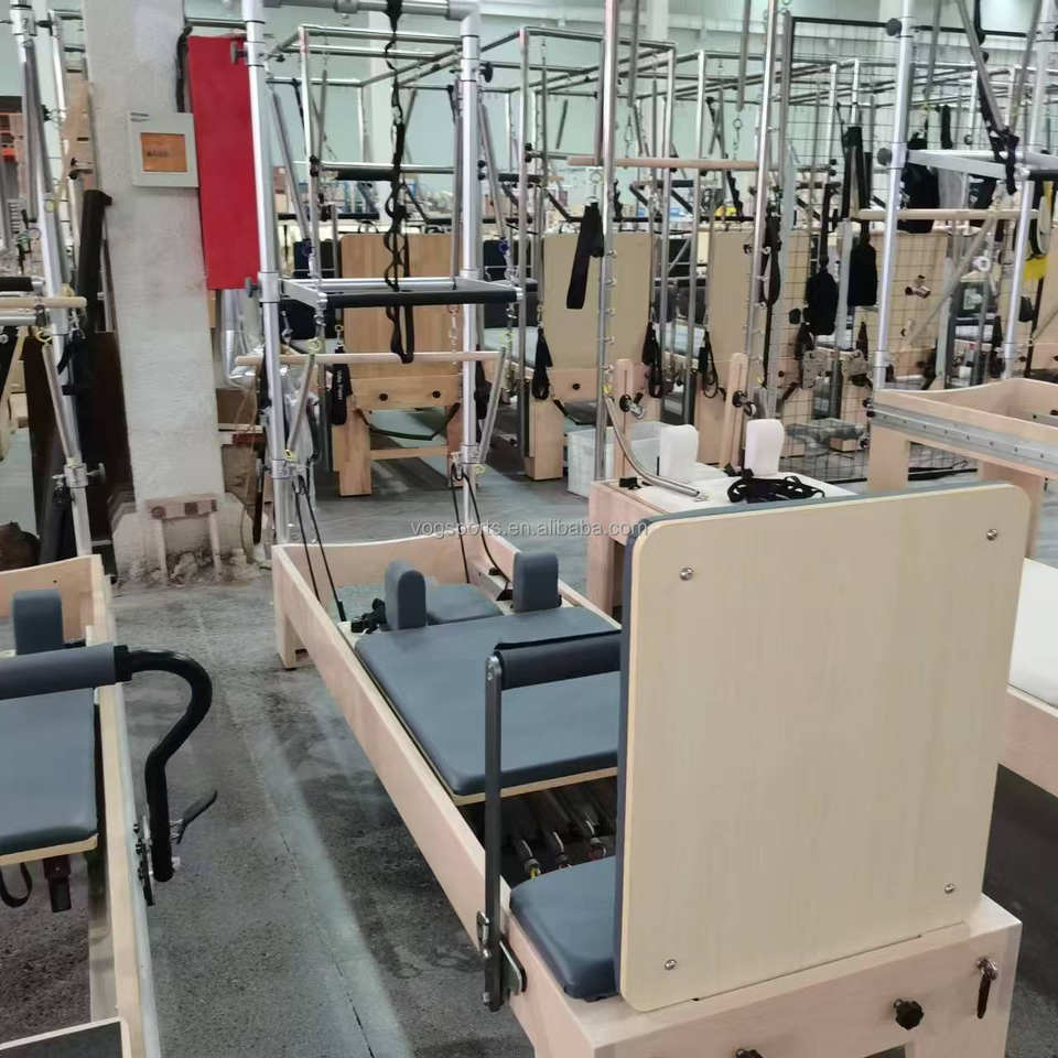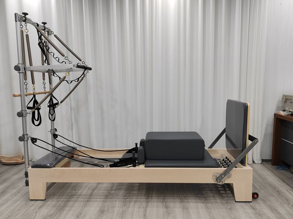 Reformer de Pilates Maple para Entrenamiento Profesional con Media Torre y Rieles de Aluminio para Uso en Estudio, Hogar y Comercial