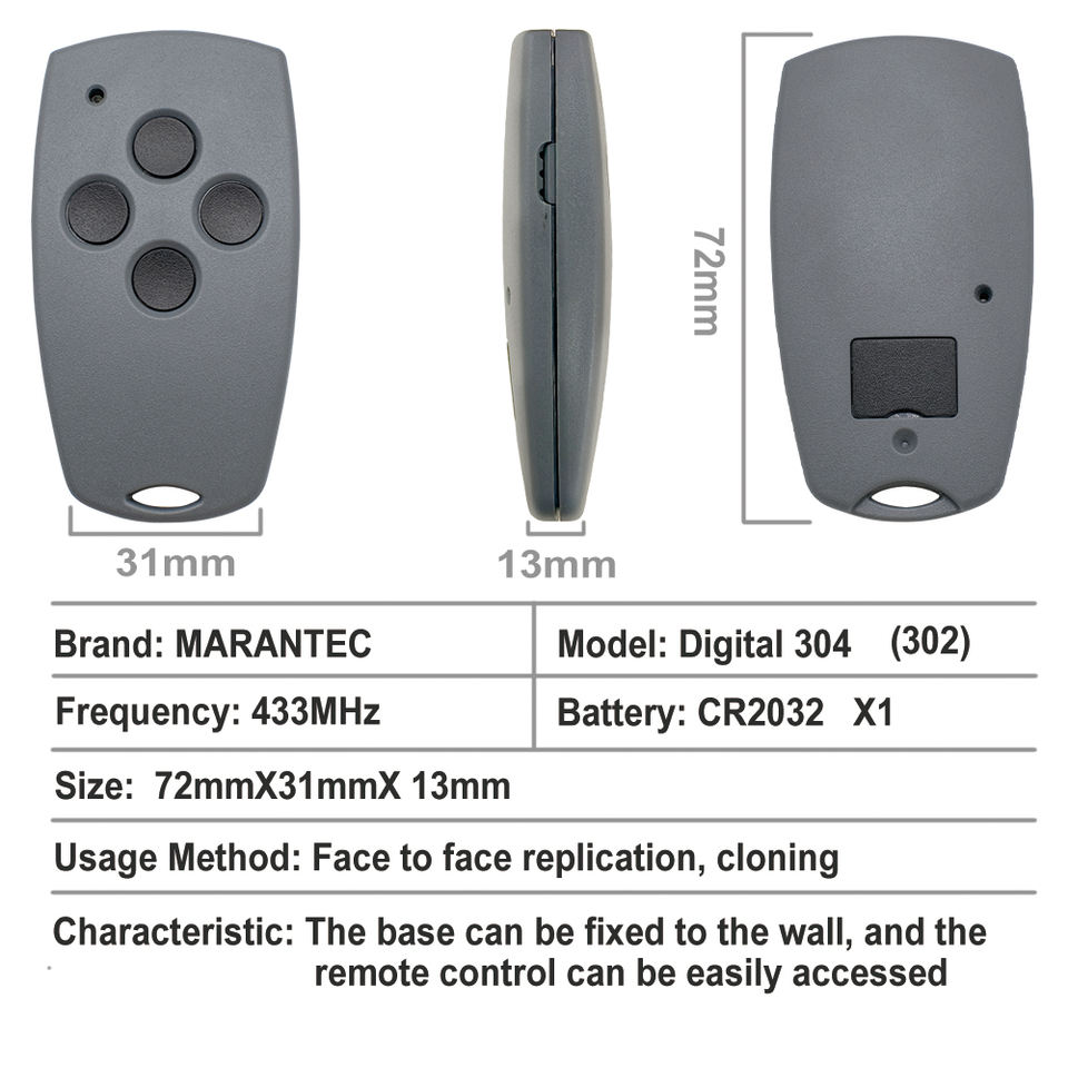 Control Remoto Clonador Multifrecuencia Marantec Compatible con 220 250 252 270 302 304 433MHz, Duplicador para Sistemas de Puertas de Garaje Command Comfort
