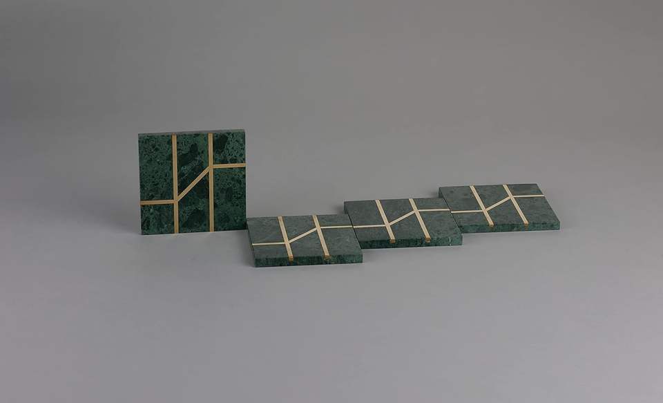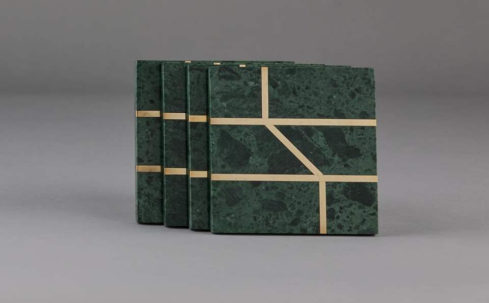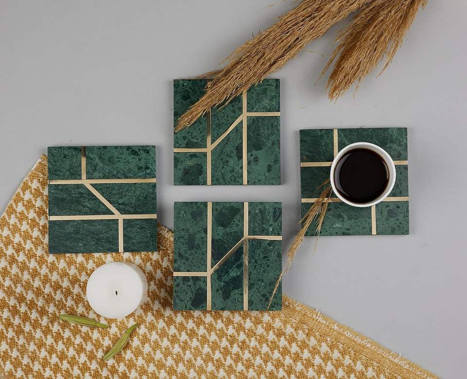 Posavasos de Mármol con Inserto de Latón, Cuadrados, Resistentes al Calor, para Bebidas y Té, Hechos a Mano, de Mármol Verde de Lujo, 10 mm de Grosor, Personalizables, Artículos de Regalo