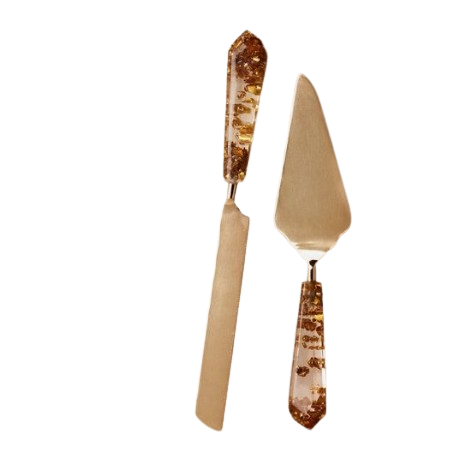 Accesorios para hornear con mango de mármol, herramientas de corte para servidor de pasteles, cuchillo, pala para pasteles pulida en oro, cortador de pasteles para fiestas de boda