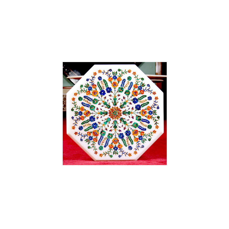 Tablero de mesa de centro octogonal exclusivo con incrustaciones de mármol
