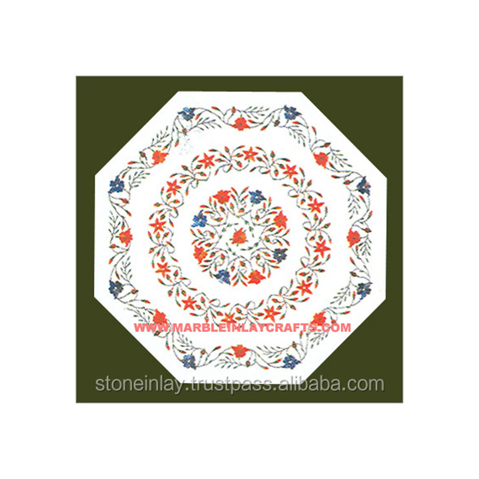 Incrustación de mármol hecha a mano, mesa de café antigua, Tops