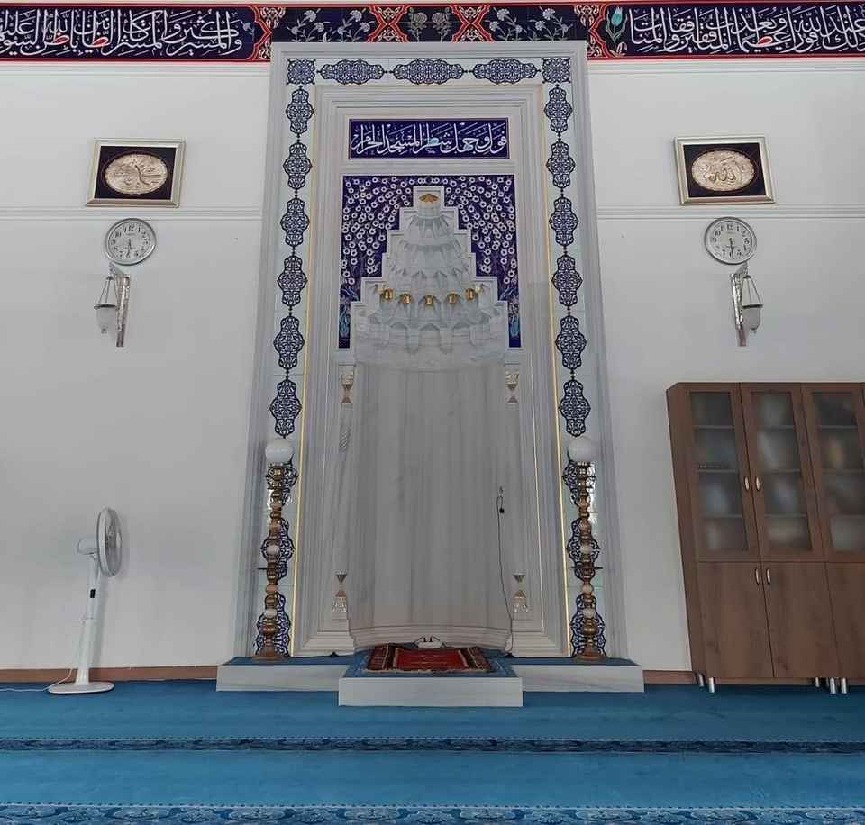Mihrab con Incrustaciones de Mármol, Diseño Floral Tallado a Mano, Moderno, para Montar en la Pared, Resistente a la Intemperie, Totalmente Personalizable, para Mezquita/Dargah
