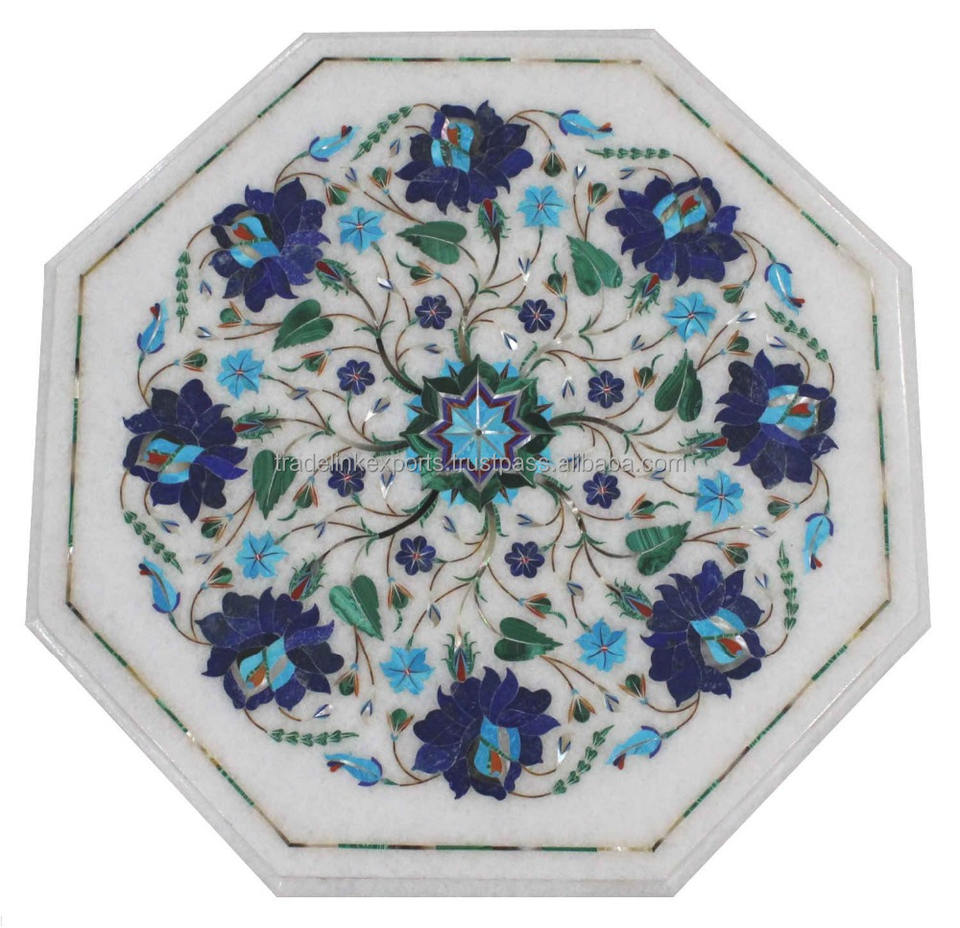 Mesa con incrustaciones de mármol con incrustaciones de lapislázuli Pietra Dura Artesanía para muebles para el hogar Mesa de lujo