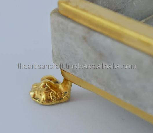 Caja de Joyería Artesanal de Mármol Natural Ecológico con Tapa de Latón, Diseño Tradicional Pintado a Mano para un Almacenamiento Elegante