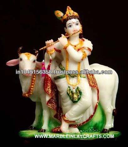 Estatua de Krishna de mármol, con el escudo de la vaca, Krishna, Murti