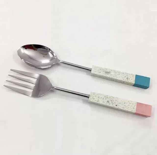 Juego de Cubiertos de Acero Inoxidable con Aspecto de Mármol y Mango de Resina, Servidor de Ensalada Chapado en Oro, Juego de Cubiertos de la Familia Real