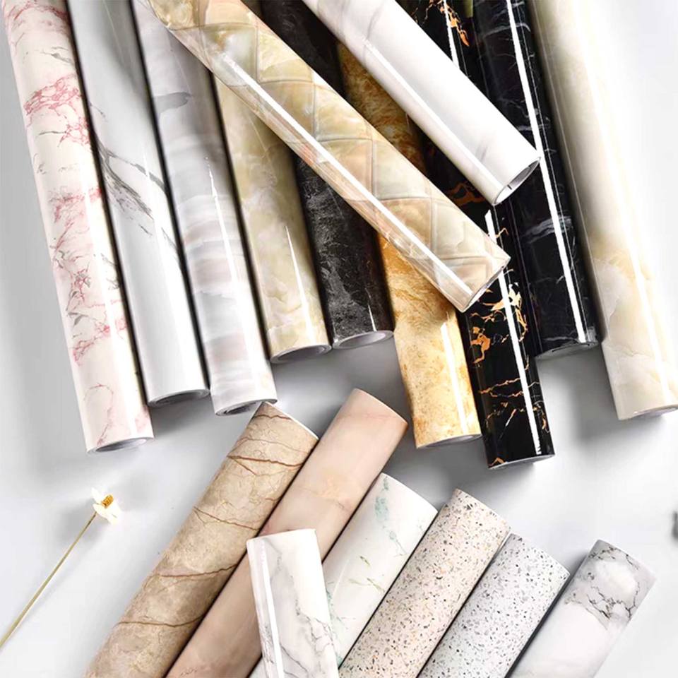 Patrón de mármol resistente al calor y al aceite papel tapiz de PVC impermeable Película autoadhesiva para decoración del hogar película protectora de mármol