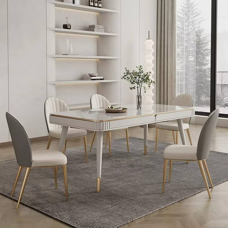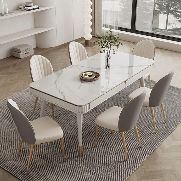 Juego de mesa de pizarra de mármol, superventas, asiento de cuero, mesa de decoración de lujo para el hogar