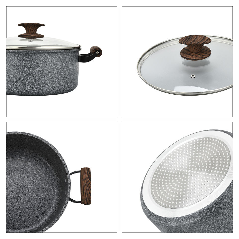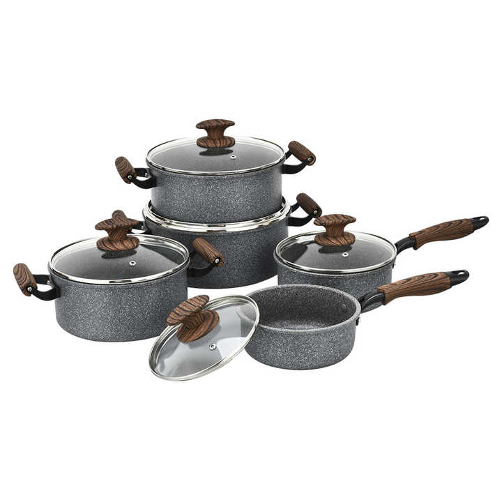 Juego de Ollas y Sartenes de Piedra de Mármol Antiadherentes de Granito con Mango de Baquelita