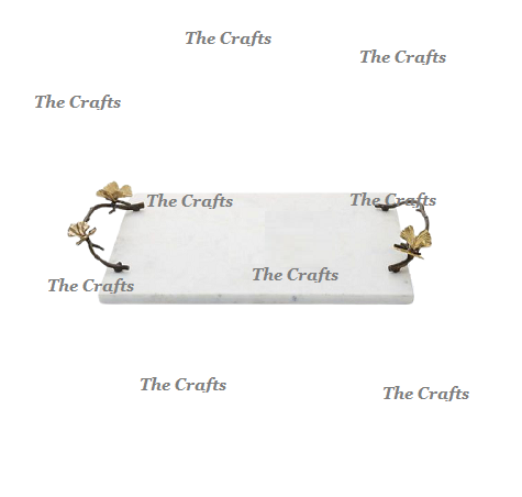 Bandeja para servir comida de color blanco mármol con asas de hierro Vajilla de cocina Bandeja para servir comida a precios asequibles