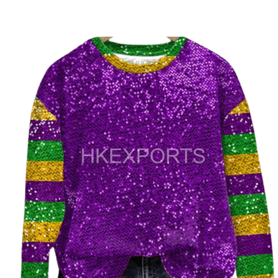 Sudadera extragrande de Mardi Gras para mujer, ropa festiva morada, verde y dorada, ropa cómoda de Carnaval