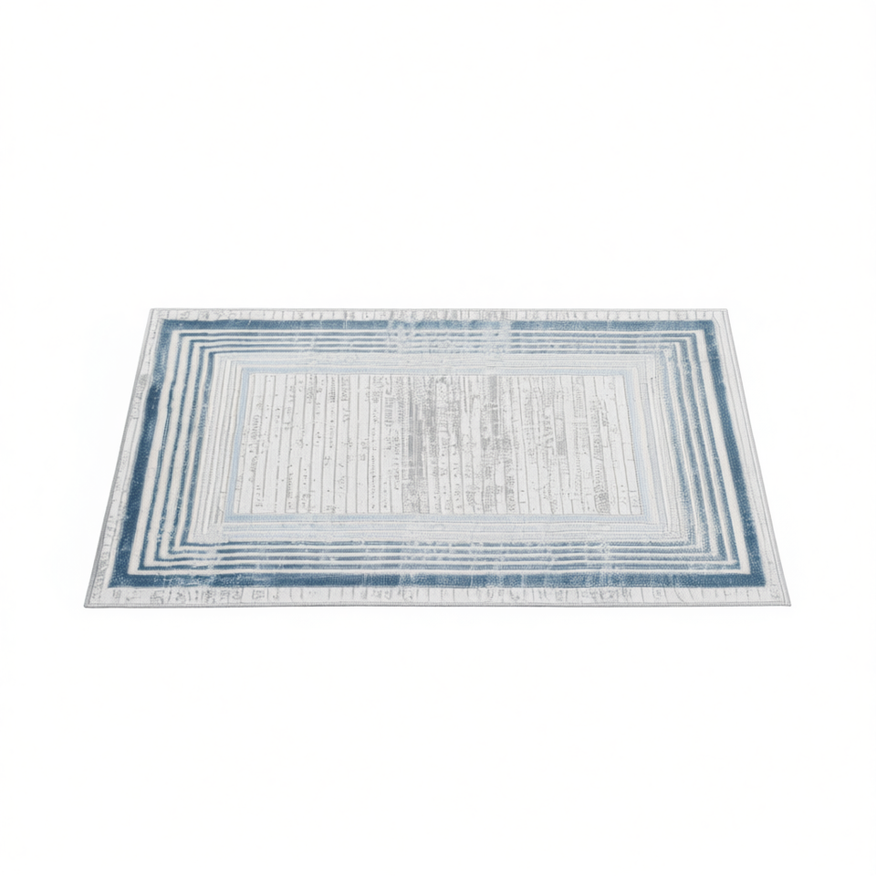 Alfombra Marfi Collection 2X3 Azul Marfil con Borde, Antideslizante, para Sala de Estar, Dormitorio, Comedor, Oficina en Casa