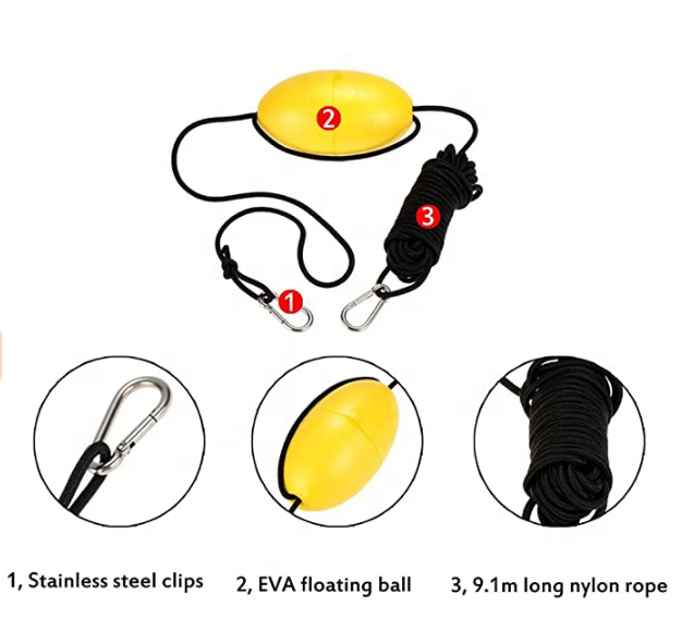 Línea de remolque de cuerda marina, boya, correa flotante de bola, anzuelo de acero inoxidable, sistema de anclas de deriva de pesca, cuerda de bola con mosquetón para kayak