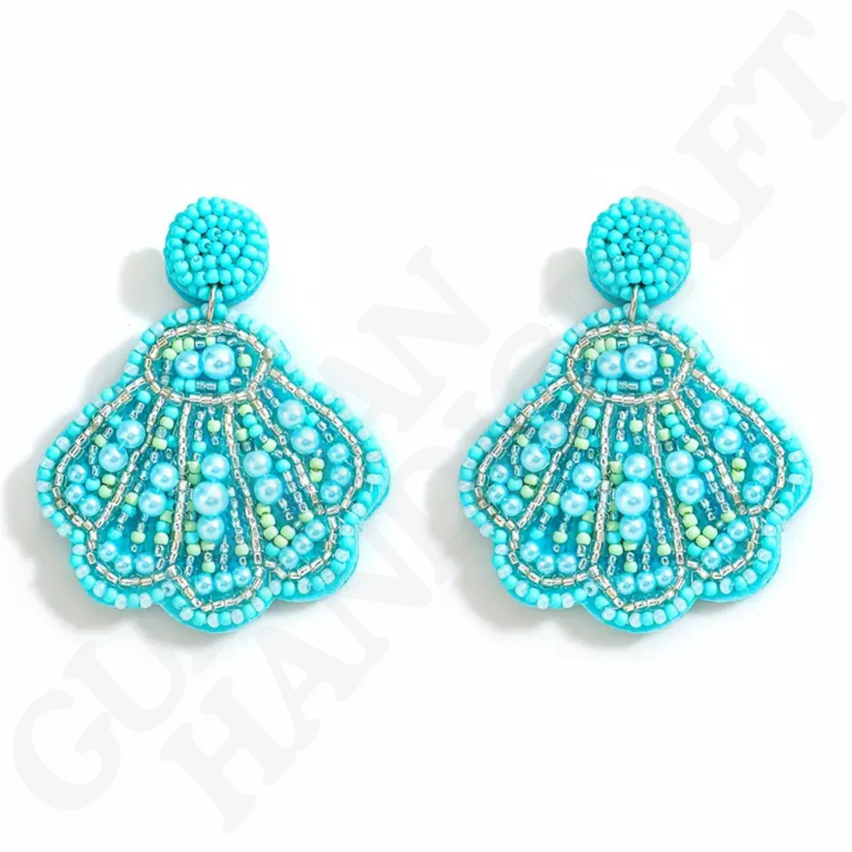 Pendientes de Verano Hechos a Mano de Inspiración Náutica, con Forma de Flor, Adornados con Cuentas de Vidrio, Imitación de Perla, Plateados, para Mujer