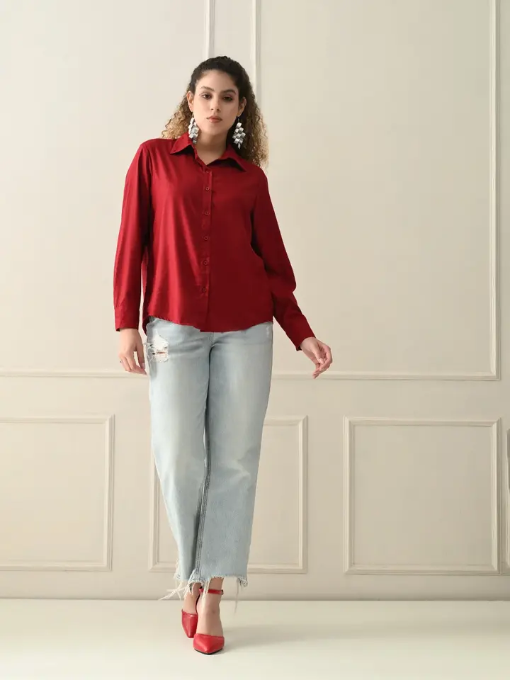 Camisa Corta con Capucha Color Granate, Camisa de Verano Hecha de Algodón Suave que Ofrece Secado Rápido, Comodidad Fresca y Elegante Estilo con Botones Tejidos a Mano