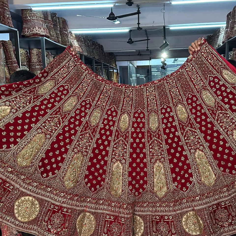 Work on fabric:HEAVY 11000 VELVET LEHENGA