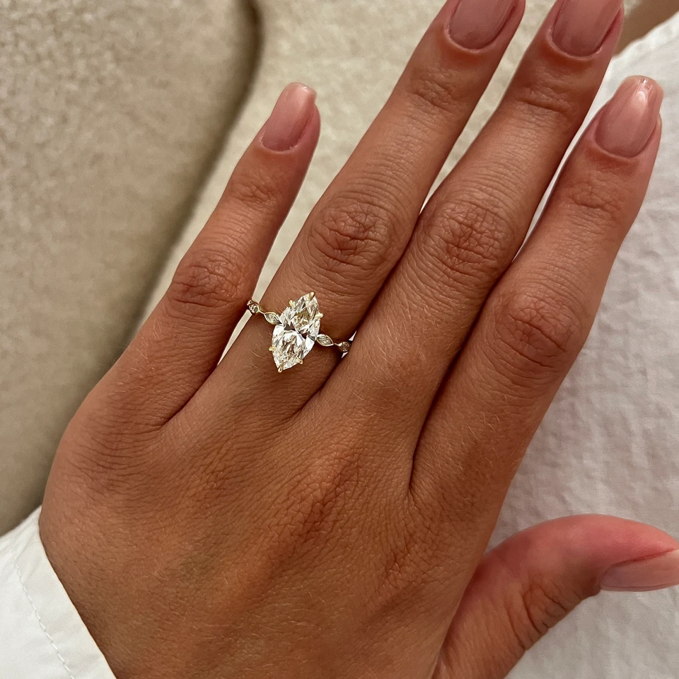 Diamante de laboratorio con corte marquesa y tallo con pequeños diamantes IGI D-E-F VVS-VS Oro Oro Blanco Oro Rosa Plata Inventario B2B