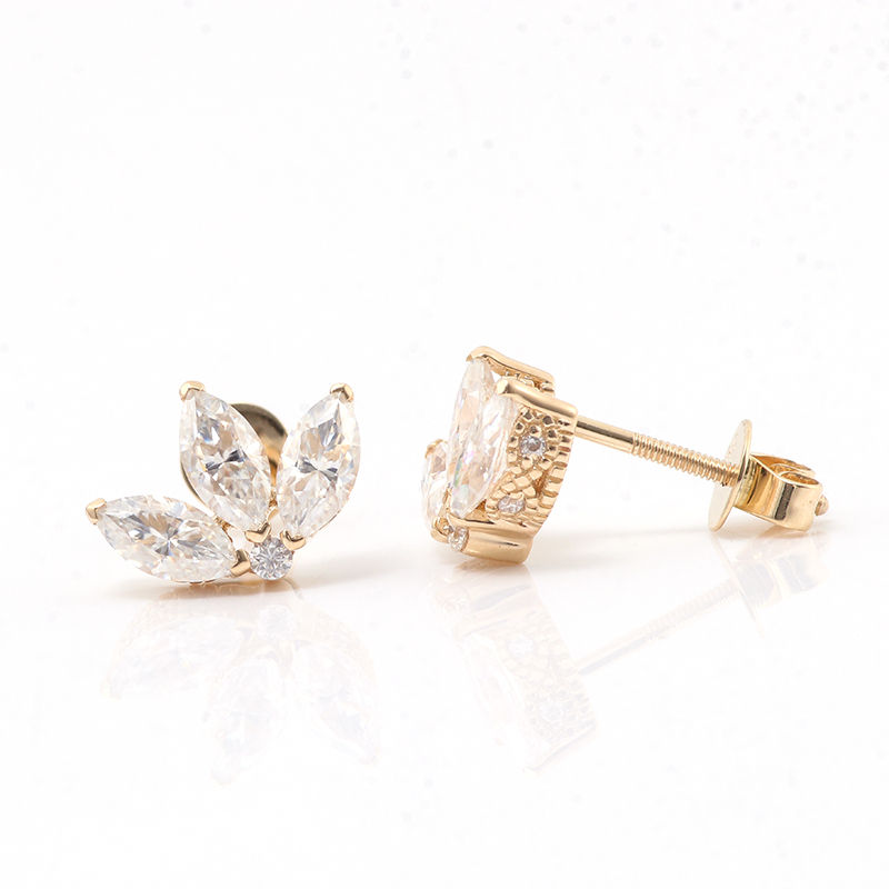Marquise Cut Shape Lab Grown Diamond Stud Pendientes Hinojo Flor Pétalos Minimalista Joyería Stud Pendientes