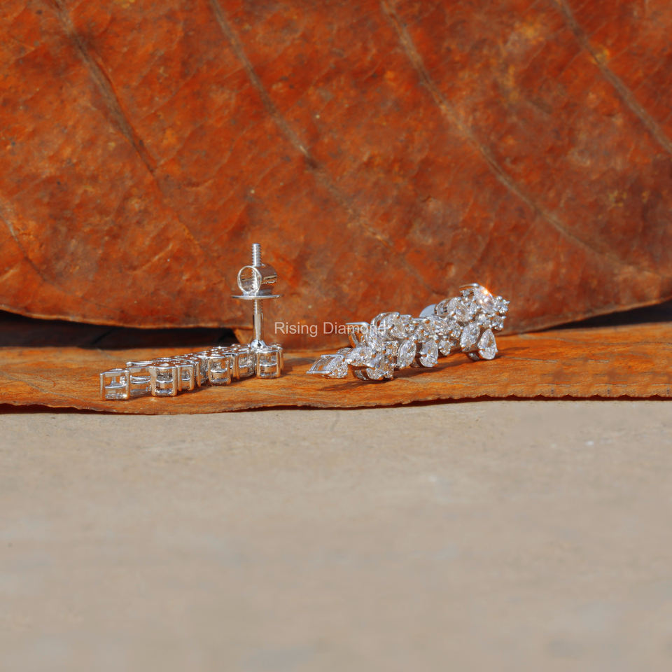 Marquesa Pera y corte redondo Lab Grown Diamond Stud Pendiente Oro blanco CVD Diamante Pendiente Regalo de aniversario para ella
