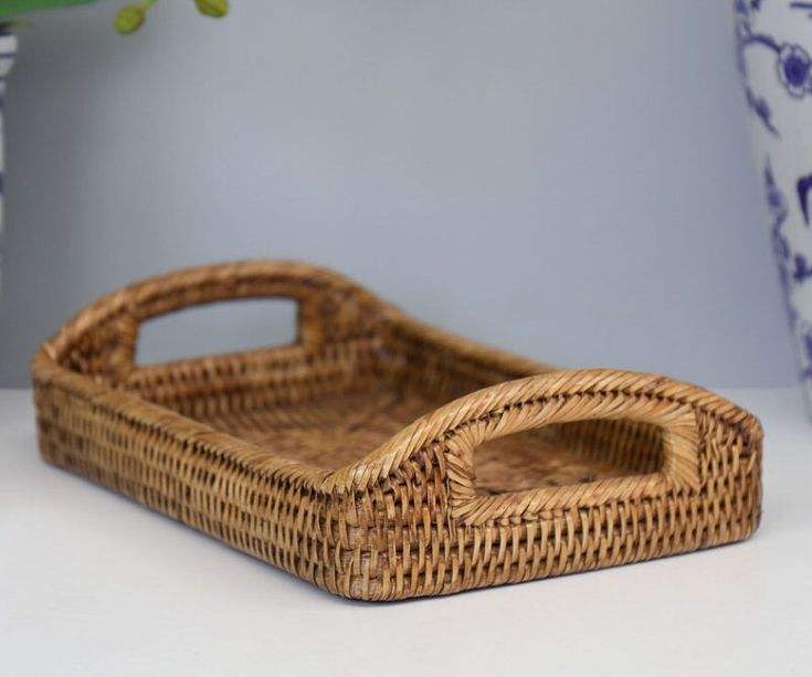 Maravillosa bandeja de servicio de ratán de bambú, bandeja decorativa hecha a mano para mesa de almacenamiento, decoración del hogar de granja