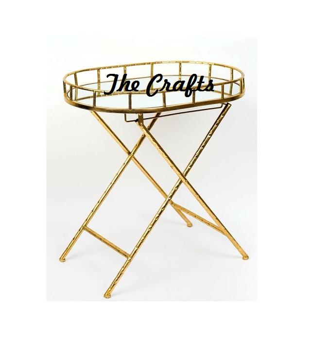 Bandeja y soporte de desayuno de hierro y vidrio de diseño atractivo, bandeja de servicio de Color dorado de tamaño y forma personalizados con soporte