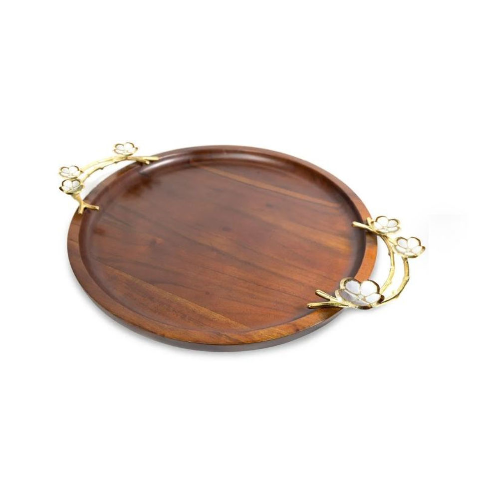 Bandeja de madera de gran tamaño de diseño maravilloso con mango de acento de hoja Bandeja para servir alimentos Perfecta para servir aperitivos Bandeja de postre de café