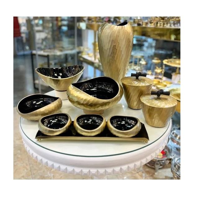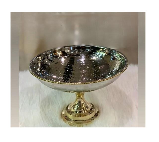 Maravilloso tazón de servir de diseño en color oro latón, tazón para frutas y chocolates con asas y patas a precios económicos.