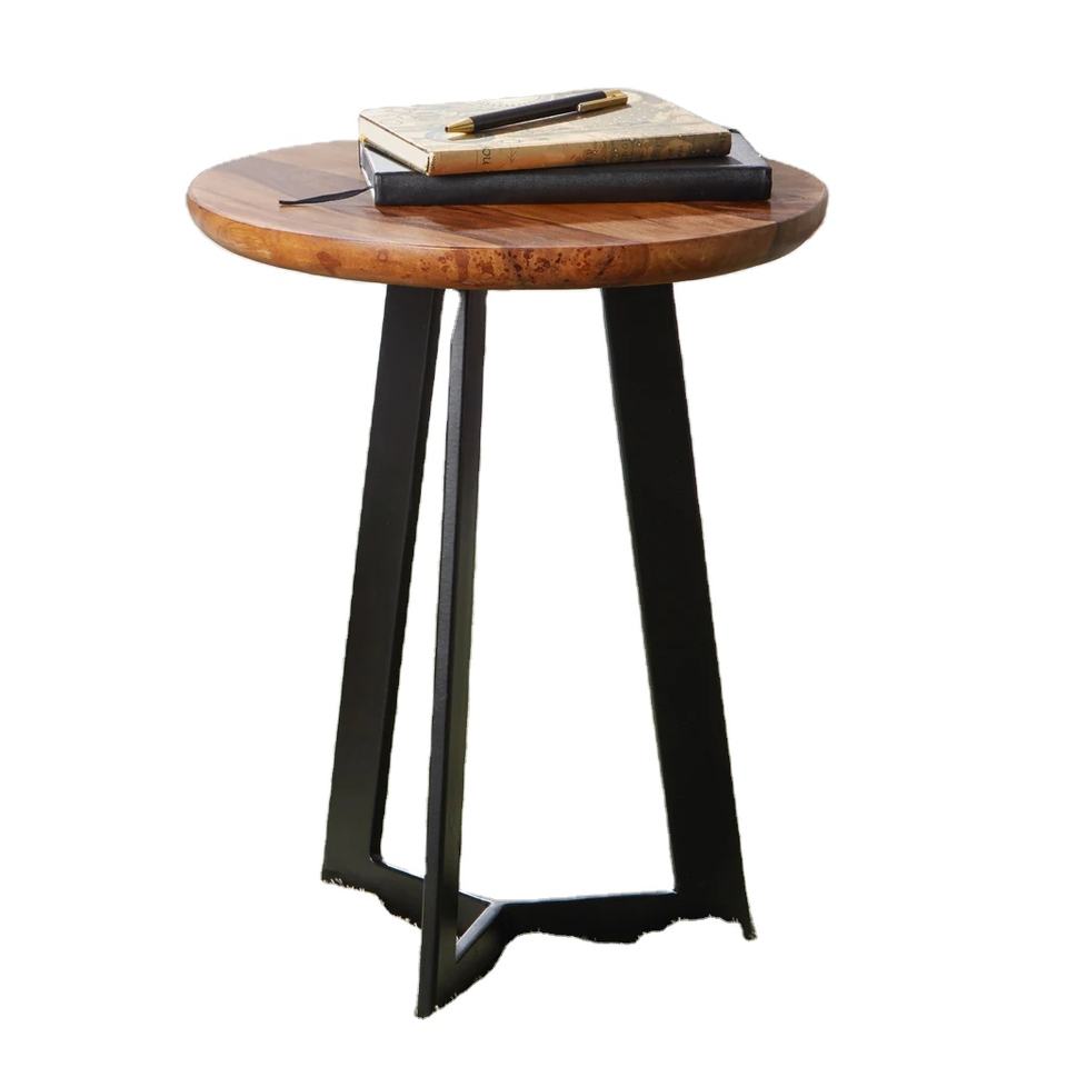 Maravilloso diseño de madera maciza superior de nogal negro Metal pata final mesa auxiliar para decoración del hogar fabricante de fábrica india a bajo costo