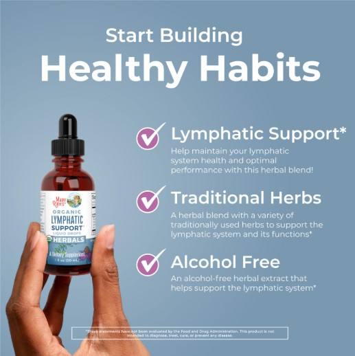 Gotas Líquidas Orgánicas Mary Ruth Wellness para Apoyo Linfático con Aceite de Argán, Suplemento Herbal para Desintoxicación e Inmunidad