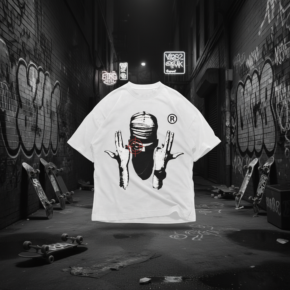 Camiseta Oversize Unisex con Gráfico de Target Enmascarado, Estilo Monocromático Grunge Punk Streetwear Y2K Skater