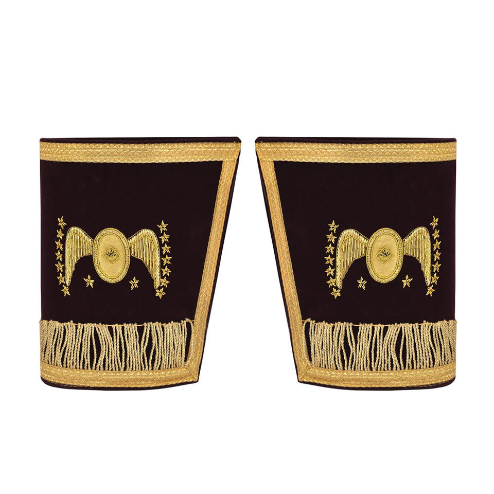 Puños de guanteletes masónicos Maroon Plain con doble trenza plateada para uniformes Masonic Regalia