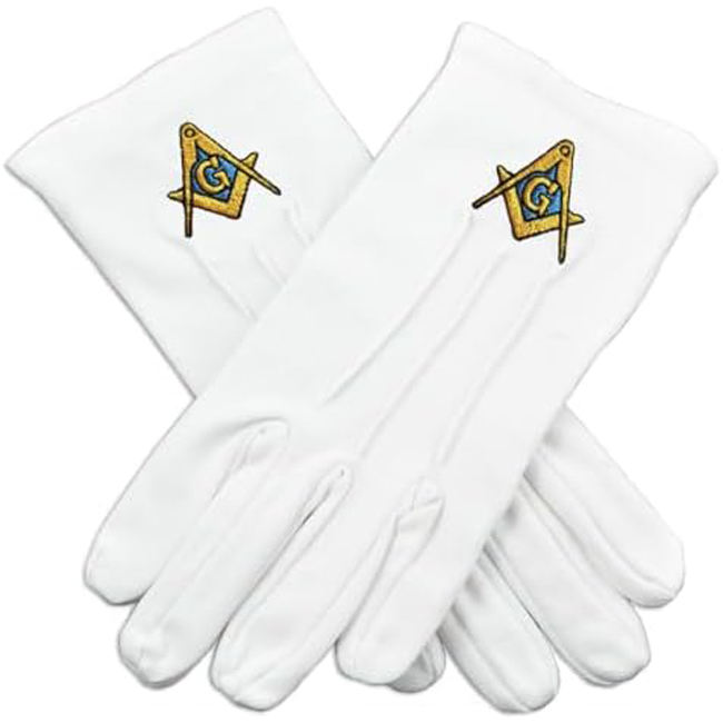 Guantes Masónicos Brújula Cuadrada Amarilla Con Bordado A Máquina G