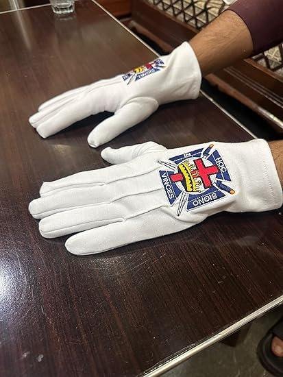 Guantes Masónicos Caballero Templario Bordados Caballeros del Templario Emblema | 100% Algodón Blanco, Ajuste Elástico | Tamaño Grande Estándar