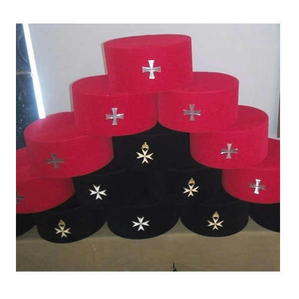 Gorra de Caballeros Templarios Masónicos con Insignia KT Sombrero Granate Borla Dorada Top Plano Estilo Único Masón Tradicional Decente 2025