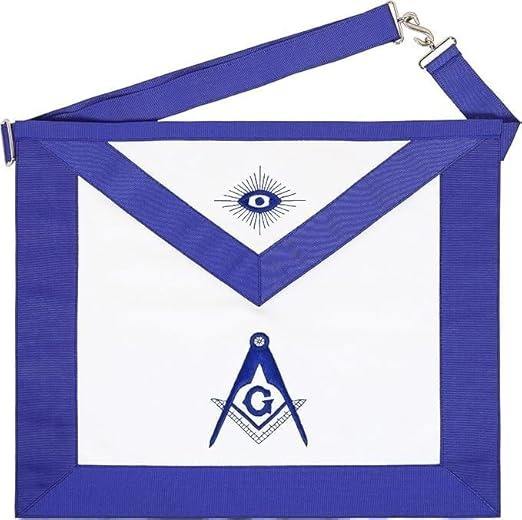 Masonic Master Mason Blue Lodge Delantal con bordado de cuero sintético bolsillo trasero y cinturón de serpiente., 14x16 pulgadas
