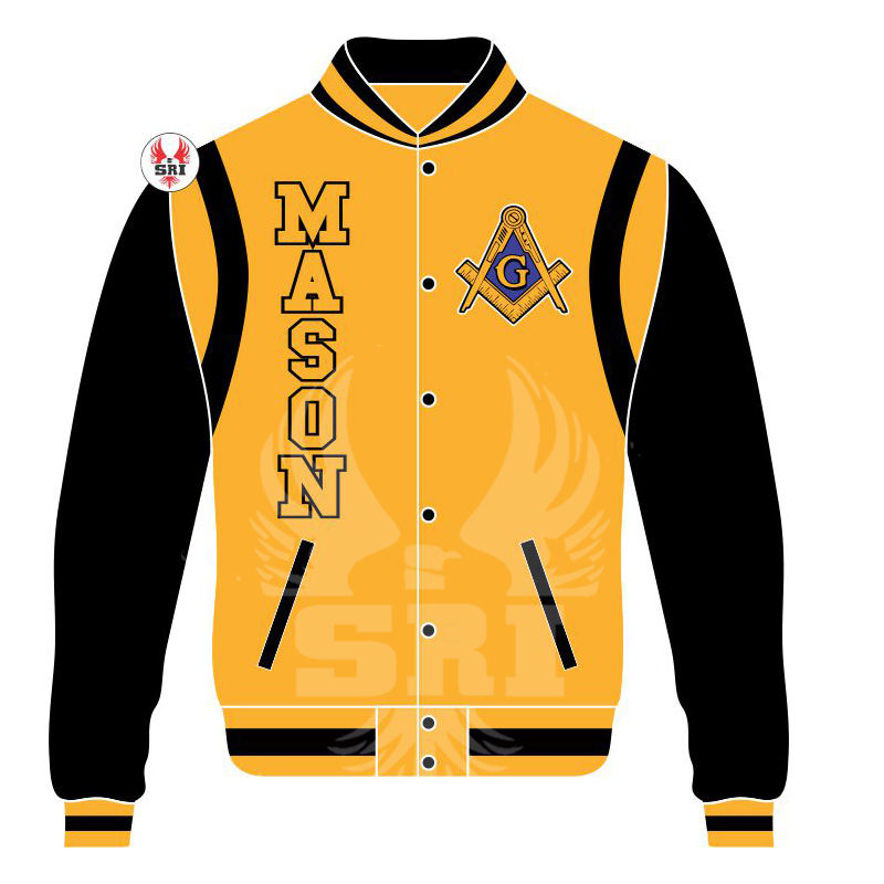 Chaqueta Masónica de Maestro Masón, Chaqueta Universitaria Personalizada | Chaqueta Universitaria Masónica de Lana con Mangas de Cuero