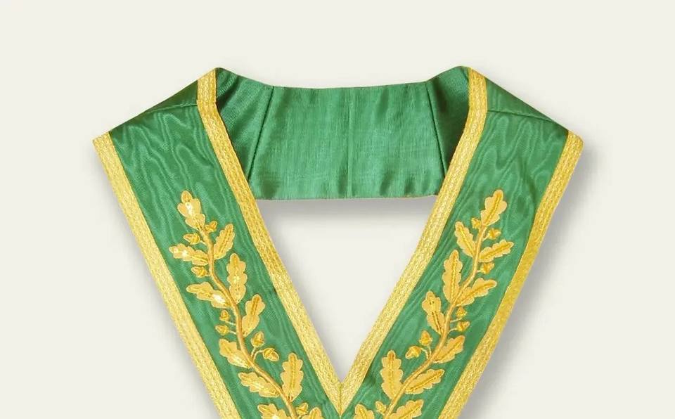 Rito escocés masónico Collar de 18 grados de cinta de lona Moire roja completamente bordada a mano con recorte dorado de alta calidad