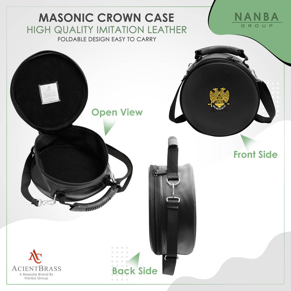 Estuche de Cuero con Cremallera para Gorra Masónica del Rito Escocés de 32 Grados, con Corona de Doble Águila, Ligero, Negro, Suave