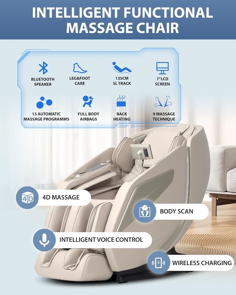 Sillón de Masaje Eléctrico de Cuerpo Completo con Estiramiento, Gravedad Cero, Reclinable, con Riel SL, Escaneo Corporal y Calefacción