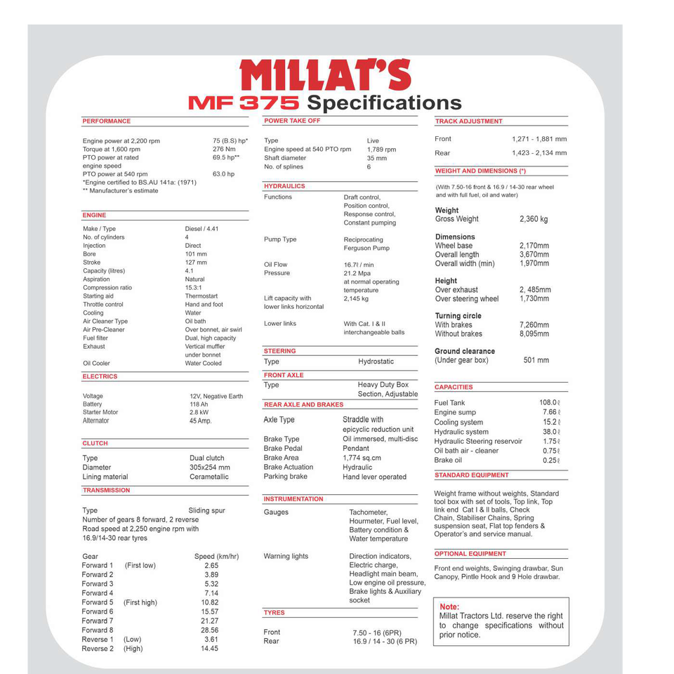 Tractor Massey Ferguson 375 al mejor precio para arado y labranza de suelos profundos equipado con un sistema hidráulico fiable