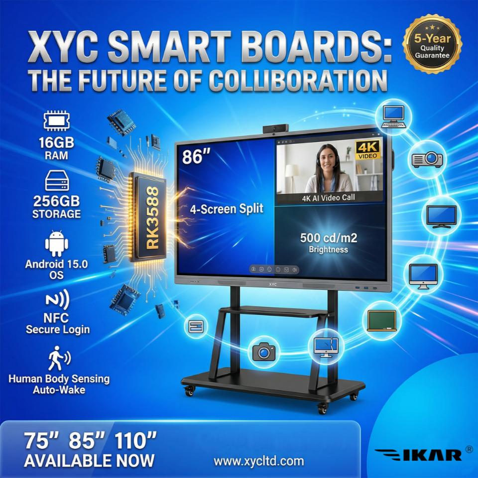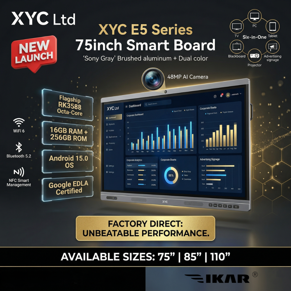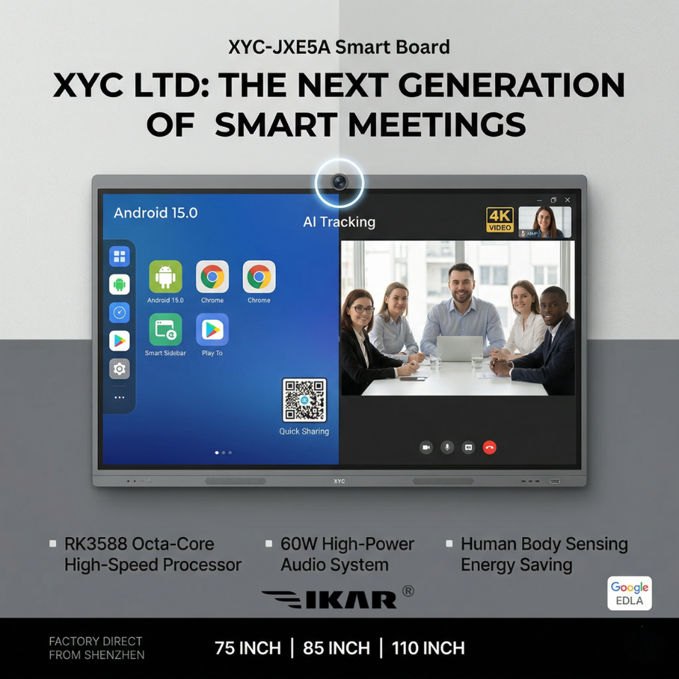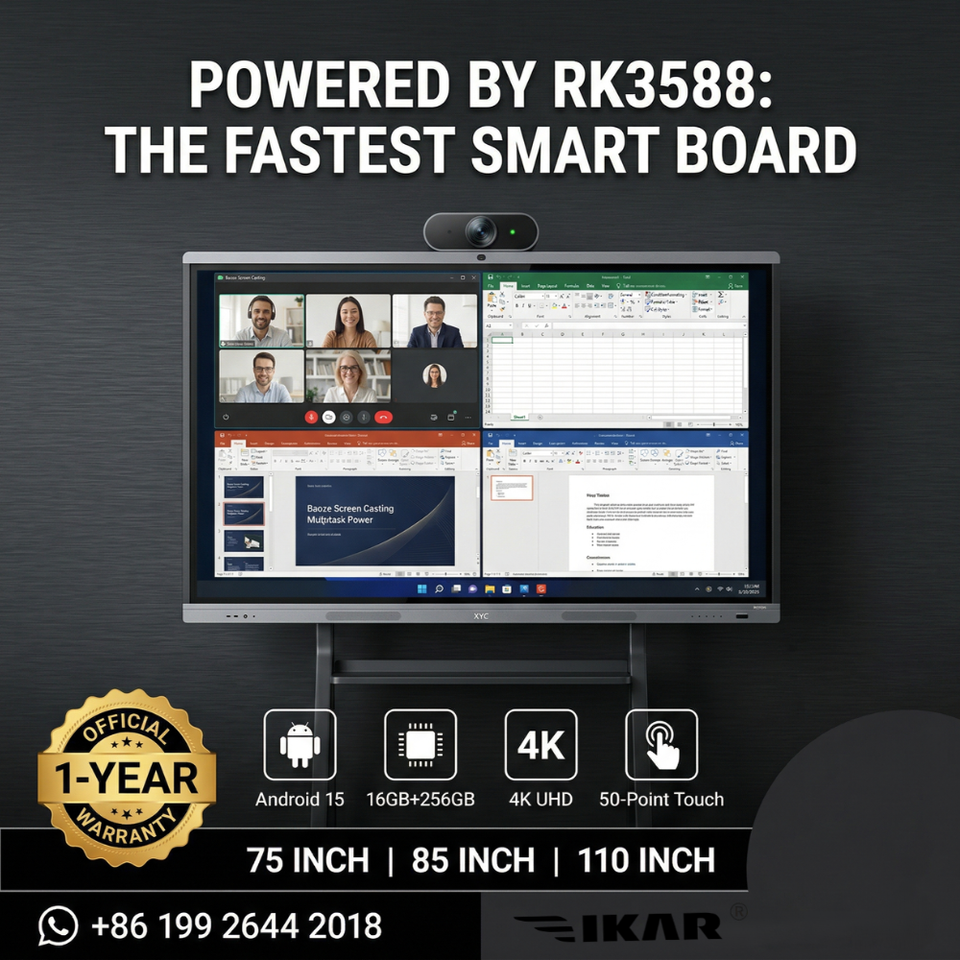 Massive Memory Capacity 86 Inch 4K IFPD 16GB RAM 256GB ROM Android 15 OS 40 Point Touch AI Person Tracking Camera Windows 11 PRO