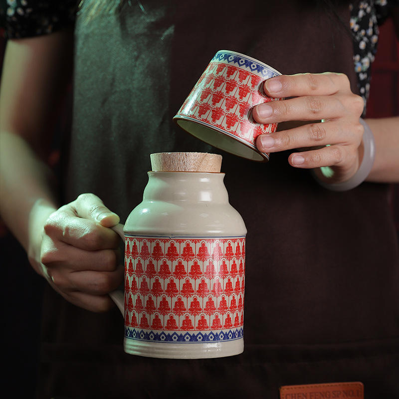 Taza Térmica Mini de Cerámica Master Gu con Tapa, Diseño Pintado a Mano, para Preparar Té, Uso en Oficina, 2329B