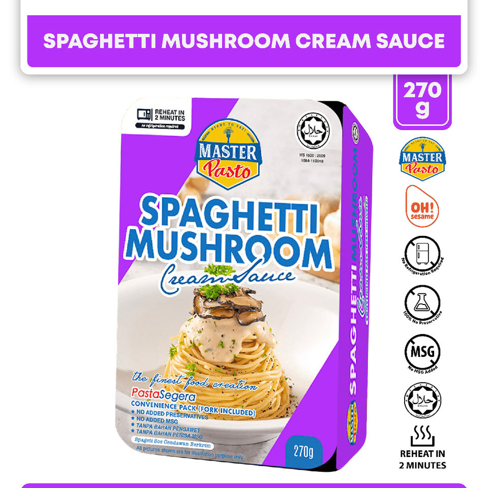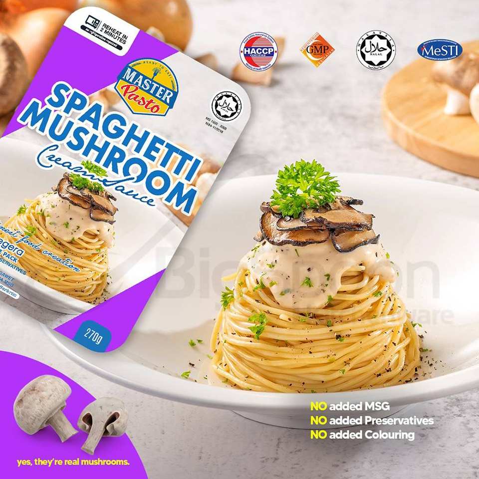 Master Pasto, Plato de Pasta Caliente Preparada y Autocalentable para Adultos y Niños, Listo para Comer en 2 Minutos, Espagueti con Crema de Champiñones, Envasado al Vacío
