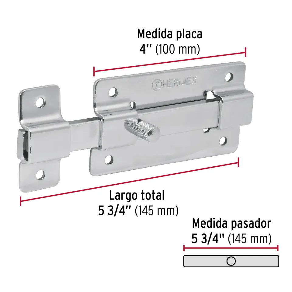 Master con 36 unidades Pasador de barra plana 4 'acabado cromado, HERMEX