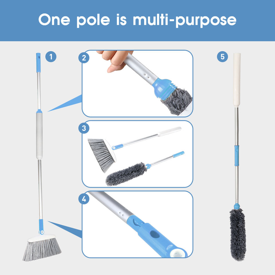 Escoba de Limpieza con Mango Telescópico de Plástico de Nuevo Diseño Masthome, con Plumero para Limpieza en Interiores