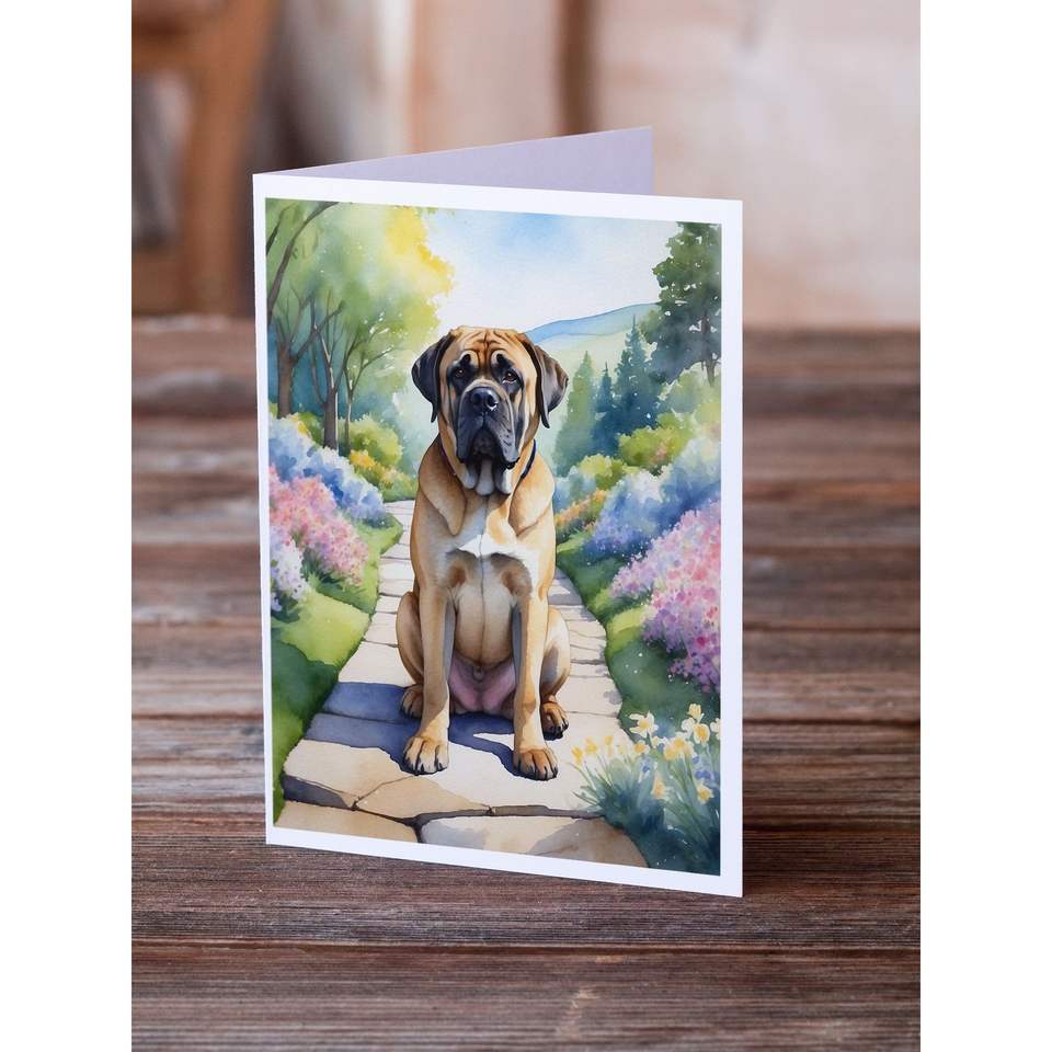 Mastiff Spring Path Whimsical A7 Tarjetas de felicitación Paquete de 8 tarjetas de notas en blanco con sobres Tamaño 5x7