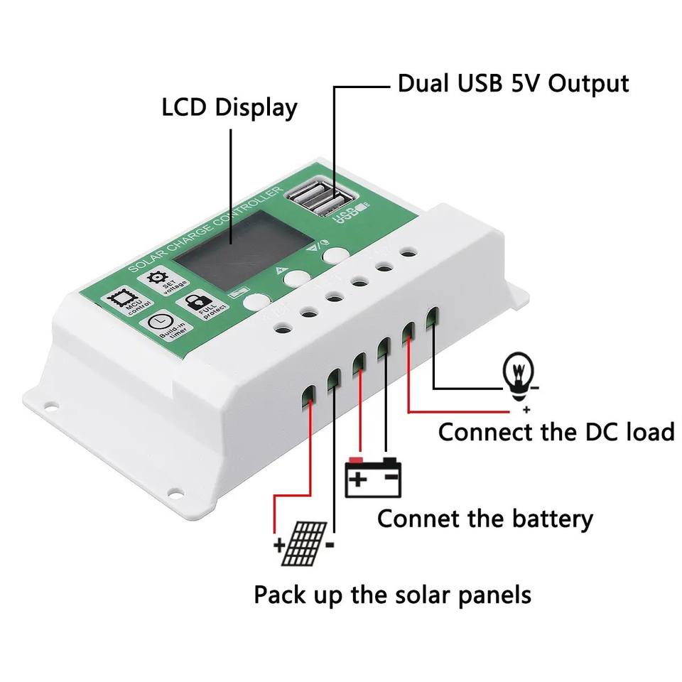 Controlador de Carga Solar Masuyoshi Mitsu 20A 12V/24V LCD con Doble USB PWM para Sistema Solar