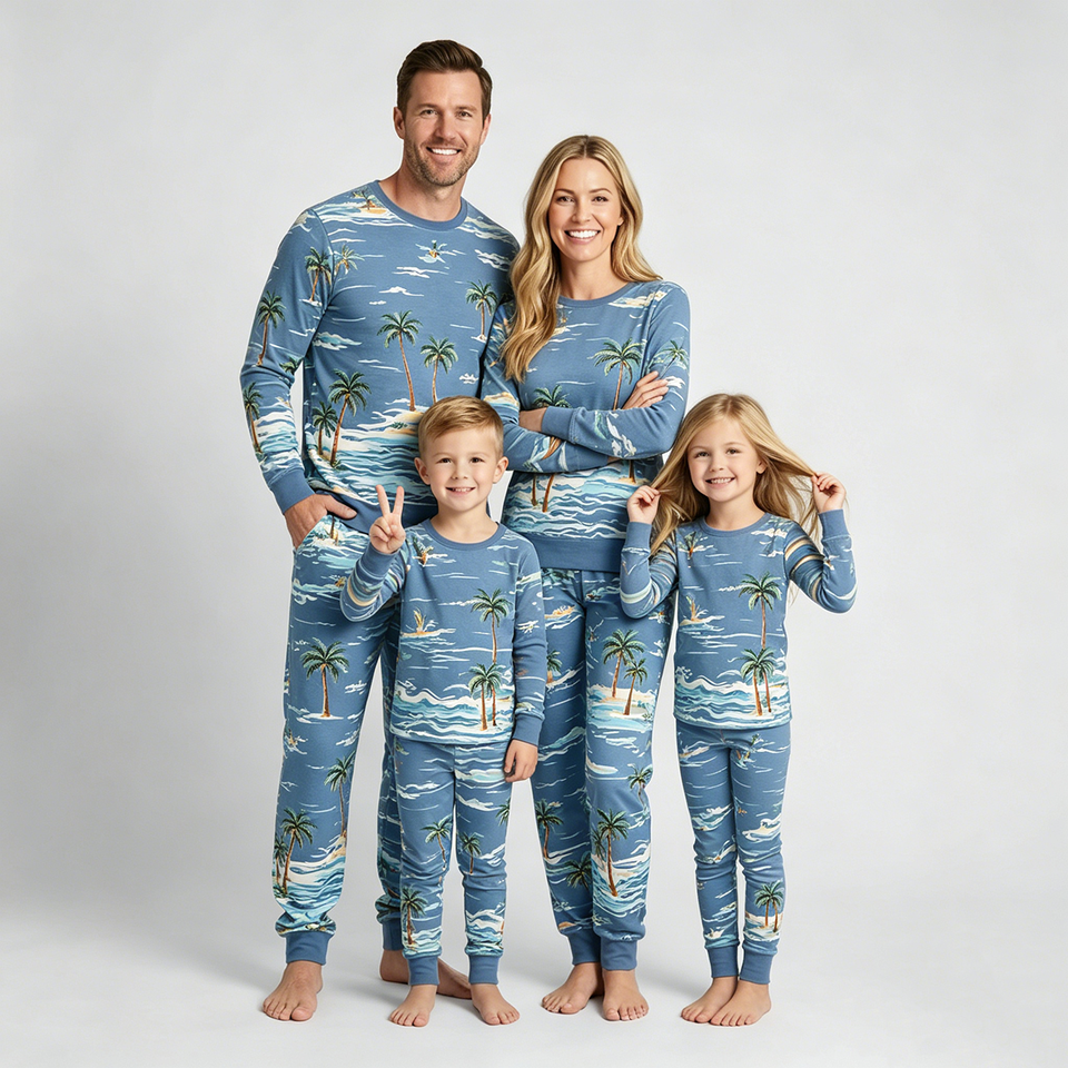 Conjuntos de Pijamas Familiares a Juego OEM y ODM, Ropa de Bambú para el Hogar, Fabricación de Conjuntos de Ropa para Toda la Familia